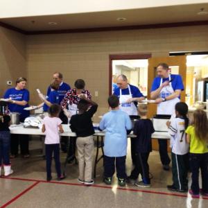 To kick off our 10 Weeks for 10 Years campaign, 14 members of Old National’s Executive Leadership Group donned hairnets to cook and serve dinner for more than 60 children followed by reading, games and other interactive activities at the Dream Center. The Dream Center serves at-risk youth by providing nutritional, educational and recreational activities.