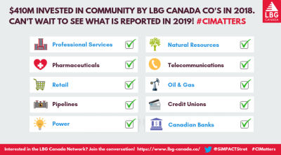 LBG Canada companies reported a total investment of $410 million in community during the 2018 LBG Canada audit cycle. We look forward to seeing the impact created as we enter the 2019 cycle!