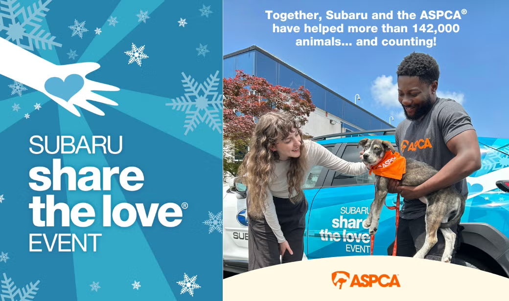 For 18 years, the ASPCA has partnered with Subaru of America for the Subaru Share the Love® Event to help raise funds, spread awareness and encourage community involvement for our nation’s most vulnerable animals. This year, you can share the love with the ASPCA, too!