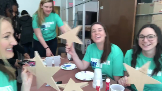 In The Lodge cafeteria on the seventh floor, employee volunteers decorated brown paper bags to donate to kids in need. Jaquae and Kiyanne, two of the stars from VH1’s Love & Hip Hop: New York painted paper bags right alongside them.