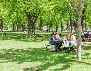 When green spaces are created in vacant lots, crime in the area is reduced. The presence of a well-cared for space, whether it’s a garden or park, is enough to ward off offenders. There are numerous theories as to why vegetation may reduce crime: the presence of maintenance vehicles, pride in an upheld green space, more onlookers watching the street. But whatever the reason, it is enough to create safer neighborhoods, and when residents feel safe they spend more time outdoors.