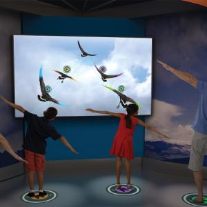 Above and Beyond is designed to be the most interactive exhibition on aerospace ever to tour, with approximately 5,000 square feet of exhibition space, including a 180-degree immersive theater presentation, a high-tech media-rich historical timeline, a simulated space elevator ride, a challenge to design and test a supersonic fighter jet in a virtual high-speed flying competition, and an avatar-based motion-capture group experience that demonstrates flight like a bird.