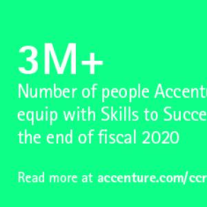 Together with its strategic partners, Accenture will equip more than 3 million people with the skills to get a job or build a business by the end of fiscal 2020 through its Skills to Succeed initiative. As a part of this, the company will increase its focus on the successful transition of individuals from skill-building programs to sustainable jobs and businesses, and bring together more organizations across sectors to create large scale, lasting solutions aimed at closing global unemployment gaps. Since fiscal 2011, Accenture has equipped more than 800,000 people with workplace and entrepreneurial skills.