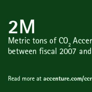 Also by the end of fiscal 2020, Accenture will reduce its per employee carbon emissions by more than 50 percent against its fiscal 2007 baseline, and begin to measure and report the impact of its sustainability initiatives with clients and suppliers. Through its carbon reduction initiatives, Accenture has avoided approximately 2 million metric tons of carbon dioxide between fiscal 2007 and 2014.