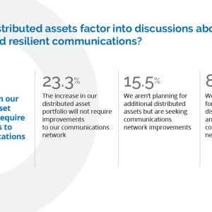 The distributed nature of utility assets is a significant factor as utilities plan for reliability and resilience, with 52 percent of respondents saying increases in their distributed asset portfolios will require communications network improvements.