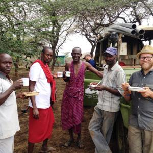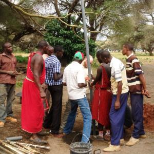 Our Maasai friends worked tirelessly and joyfully and were able to read the landscape for clues indicating a shallow water table such as the presence of water-loving Yellow Fever Acacia trees. When our last section of well-casing snapped in half, and my colleagues and I scratched our heads as to how to repair it, the Maasai kindled a small fire and heated and perfectly flared a bell end in the pipe. The Maasai community is no stranger to foreign aid. The ranch is pocked with wells installed by non-governmental organizations that have gone dry or are constructed with pumps that are broken and cannot be repaired with local parts or require expensive diesel fuel to operate. Where our project differed from many that came before was that we sought not to provide a finished product, but rather to provide equipment and the skills necessary to use it. As our truck bounced north towards camp with the setting sun casting long shadows on the Chyulus on the evening of February 11, we grinned ear-to-ear having witnessed that afternoon the successful installation of the second microwell, but more importantly, a newly empowered community eager for the opportunity to face its challenges.