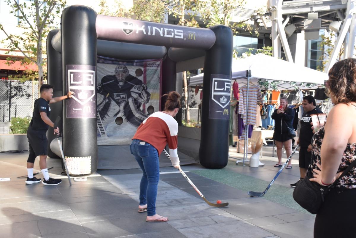 Additionally, the Los Angeles Kings were on site at Fiestón en la Plaza to offer attendees a chance to test their hockey skills by shooting a puck at specific targets. Anyone who tried their hand, received two free tickets to attend a Kings game on their birthday and an additional 25% off select games throughout the season.