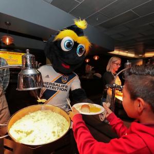 During the event, LA Galaxy players and AEG staff from the LA Galaxy and Dignity Health Sports Park served complete Thanksgiving meals to 250 local children and families in need from neighboring organizations including Children’s Institute, Los Angeles Children and Family Services, The Salvation Army Red Shield, Koinonia Family Services and El Nido Family Services.