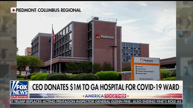 Aflac CEO Dan Amos joined Fox and Friends to discuss why he and his wife, Kathelen, recently donated $1 million to help Piedmont Columbus Regional Hospital in Aflac’s hometown of Columbus, Georgia, in the wake of the COVID-19 pandemic.