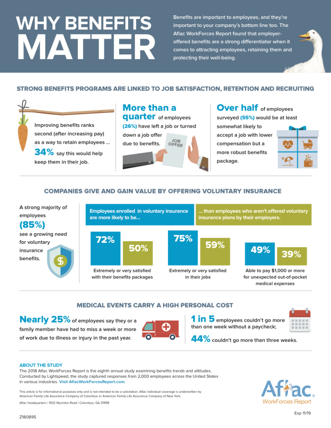 To learn more about how benefits can impact your workforce, read the 2018 Aflac WorkForces Report.