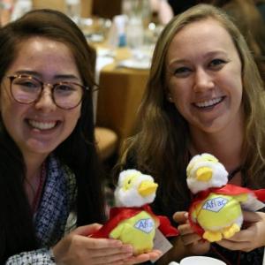 As part of their commitment to DMLC, Aflac sponsored the President’s Luncheon, which provided them with a chance to engage with the Dance Marathon students who are responsible for leading their organizations on their respective campuses. Buffy Swinehart, Senior Manager for Aflac’s Corporate Social Responsibility program, and Margaret Price, Territory Recruitment Consultant,also from Aflac addressed the audience with a clear message–follow your dreams and find an opportunity to make an impact when you enter the workforce. They shared the history of Aflac’s involvement with children’s hospitals, highlighting Aflac’s childhood cancer campaign, and demonstrating to students how they can make an impact and stay connected to charitable causes in their communities after their graduation.