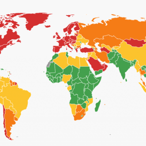 A color-coded map in the report shows where countries stand in terms of general progress on the goal based on several academic papers from the past few years, including from the Potsdam Institute for Climate Impact Research. Countries that have achieved the five targets of SDG 13 are in green, while those farthest behind are in red.