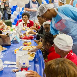 The activities kicked-off on Friday when 16 Action Team Captains from New Hope Academy and free agent pitcher Wright teamed up to lend a hand at the holiday luncheon and dance at the Gillespie Senior Center. Located across the street from the Academy, the event hosted more than 200 senior citizens from the Prattville area. Captains teamed up with Wright and volunteers from nearby church groups to serve lunch to the seniors. After lunch, everyone convened on the dance floor to celebrate with holiday music.