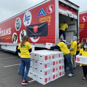 Albertsons Safeway is a corporate partner of The Salvation Army, and helped source food for the 3,000 boxes, provided a discounted rate on food purchased by The Salvation Army, donated gift cards, and supplied 5 semi-trucks and drivers to transport food to the event. At the event, volunteers loaded food into vehicle trunks and back seats, including boxes filled with canned fruits and vegetables, peanut butter, jelly, canned meat, two loaves of bread, oatmeal, and cereal, as well as a gallon of milk, one dozen eggs, 2 pounds of chicken and a $20 gift card to Albertsons and Safeway. Additionally, The Salvation Army received a $20,000 grant from the Albertsons Companies Foundation’s Nourishing Neighbors Fundraiser in the Denver Division.