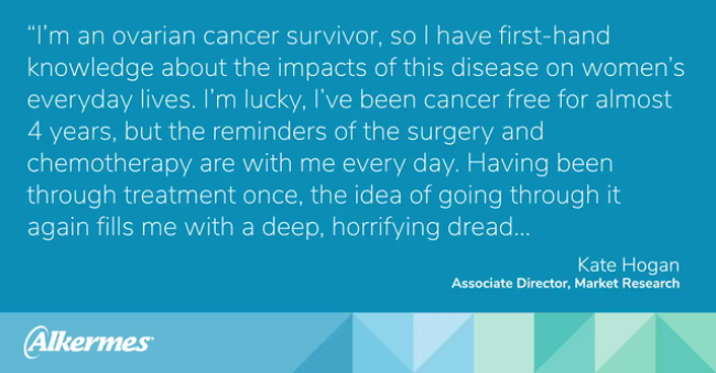 During Ovarian Cancer Awareness Month, Alkermes employee, Kate, shares a glimpse into her personal journey with ovarian cancer, which inspires her work within the oncology space.