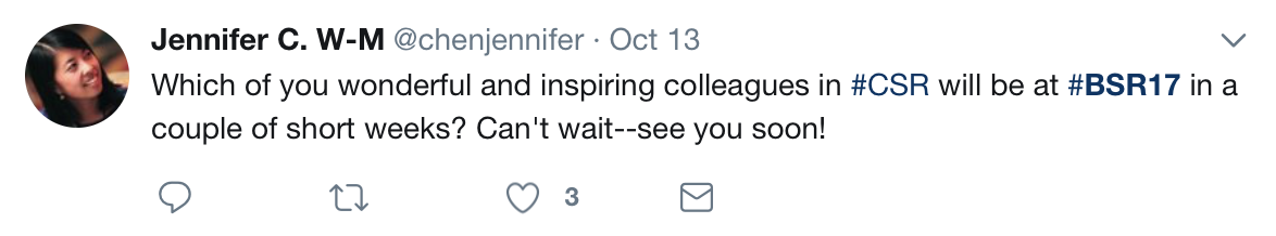 - Instagram: Follow our Instagram account, @bsrorg, for exclusive, behind-the-scenes looks at the Conference. Post your photos using #BSR17—and don’t forget to tag us!