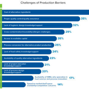 It takes robust design and construction strategies based on current and forthcoming food science to address these challenges and equip companies entering the alternative dairy market with the new and retrofitted facilities they need to succeed. To get that far, it helps to first understand each of those challenges, which is exactly what we’ll do here by discussing the four top-ranked barriers identified in our survey.