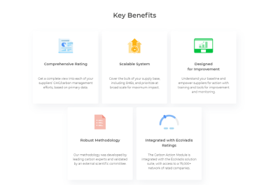 The EcoVadis Carbon Action Module thus provides a comprehensive, scalable and collaborative performance improvement tool to reduce carbon emissions, helping to ensure that global heating can be kept within the 1.5 °C target established under the terms of the Paris Agreement.