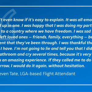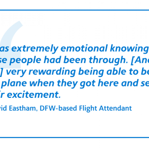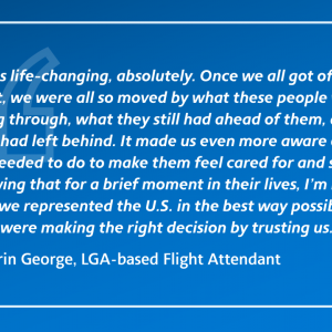 Thousands of American Airlines flight attendants volunteer each year to crew flights of the Civil Reserve Air Fleet, a U.S. government program that provides the Department of Defense with additional aircraft capacity in times of national crisis. Dozens of those flight attendants were called into service recently, willingly accepting the assignment and helping American fulfill its duty to the country. These are their reflections on their experiences as crew members on American’s rescue flights transporting evacuees from Afghanistan.