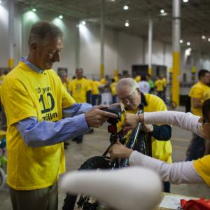 Amway headquarters was full of yellow shirts proclaiming “10 Years. 10 Million Children.” To accommodate all three Amway manufacturing shifts, volunteering started at midnight and worked through 10:00pm.