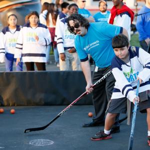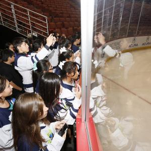 Following the presentation, the Boys and Girls Club youth had the opportunity to experience firsthand what they had just learned. George Parros, Brian Hayward and 20 TWC employee volunteers teamed up to guide the youth with hands-on activities, which showcased the relevance of STEM concepts in hockey. Rotating among three activity stations outside the Honda Center, the kids had a chance to review the design of a hockey stick, shoot pucks of different weights, and even play goalie in full-on goalie equipment.