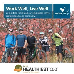 September 26, 2016 /3BL Media/ -- Antea Group has been named, for a second consecutive year, as a Healthiest 100 Workplace in America, an awards program presented by Springbuk®. The top one hundred employers will be recognized at the Corporate Wellness Conference® in Washington D.C. on September 26, 2016. The winning organizations are honored for their commitment to employee health and exceptional corporate wellness programming. Over 5,000 employers applied for the Award nationally.