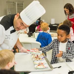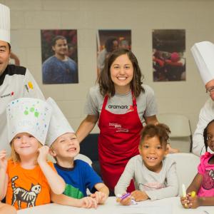 Aramark chefs, dietitians and dozens of other volunteers created whole wheat pita and vegetable sandwiches and bananas on a stick for Nashville's Martha O'Bryan Center pre-schoolers on Aramark Building Community Day (ABC Day), the company’s global day of service. The volunteer service day is part of the company's year-round community engagement that inspires people t lead healthier lives and succeed through education and employment.