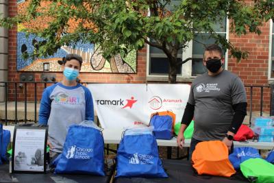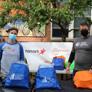 In Chicago, Aramark volunteers and SMART health clinic personnel at several Chicago Public Schools locations distributed more than 3,000 back-to-school bags with pencils, pens, notebooks, rulers, hand sanitizer, personal hygiene items and headphones, so students can better focus on learning at home.