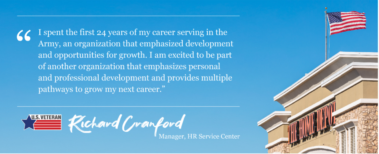 Richard Cranford is an Army veteran who served our nation for 24 years. Today, he’s a contact center manager at The Home Depot’s Human Resource Service Center.