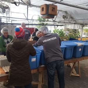 The 25 Arrow volunteers helped to pack food bags that would be donated to local families in need, and they also washed, chopped and boxed pallets of lettuce, mushrooms, seasonal produce and eggs for distribution to local markets and stores.