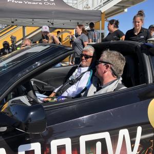 Known as the Arrow SAM Car – SAM stands for semi-autonomous mobility – Schmidt controls the Corvette on the racetrack or city streets using head controls and voice commands.