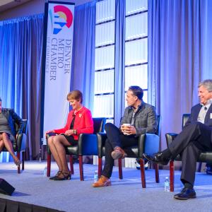 He was joined by moderator Kelly Brough, the Chamber’s president and CEO, as well as fellow panelists Ceyl Prinster, president and CEO of Colorado Enterprise Fund, and Peter Adams, executive director of the Rockies Venture Club.