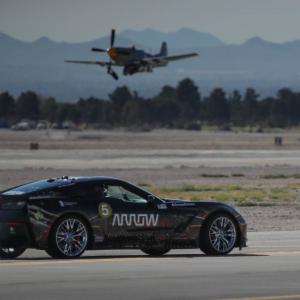 At Nellis, Schmidt completed three official demonstration runs down a two-mile long runway, “racing” low-flying vintage and jet aircraft during each run.