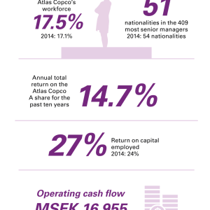 Atlas Copco is a world-leading provider of sustainable productivity solutions. The Group serves customers with innovative compressors, vacuum solutions and air treatment systems, construction and mining equipment, power tools and assembly systems. Atlas Copco develops products and services focused on productivity, energy efficiency, safety and ergonomics. The company was founded in 1873, is based in Stockholm, Sweden, and has a global reach spanning more than 180 countries. In 2015, Atlas Copco had revenues of BSEK 102 (BEUR 11) and more than 43 000 employees. Learn more at www.atlascopcogroup.com or follow us on social media at Facebook, LinkedIn, Twitter, and Youtube