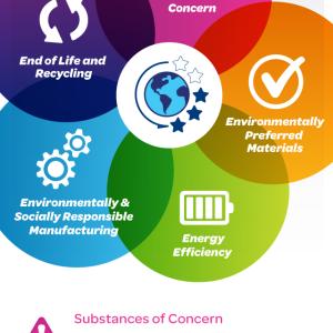 AT&T’s original eco-rating criteria and attributes have been re-assessed and updated to address the quickly shifting sustainability landscape. For example, the already-existing attribute of “responsible manufacturing” now takes into account new social components, including conflict minerals usage, implementation of a human rights policy, and public reporting on occupational safety management systems and factory code of conduct.