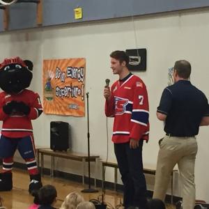Building on years of success, Avista has partnered with the Spokane Chiefs Hockey Club for the Avista Heroes at School program. Recently, Avista was at Stevens Elementary in Spokane with the Spokane Chiefs Hockey Club, where they discussed goal setting and achievement with the students. Avista donates 200 hockey game tickets to school administration who can use them to reward students who achieve their goals.