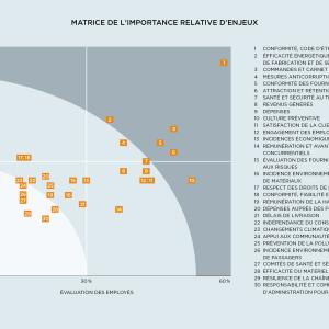 Résultant de la consultation formelle des parties prenantes de Bombardier de 2014, la matrice de l’importance relative des enjeux nous montre quels sujets influencent le plus les décisions de nos employés et de nos parties prenantes externes au sujet de Bombardier.