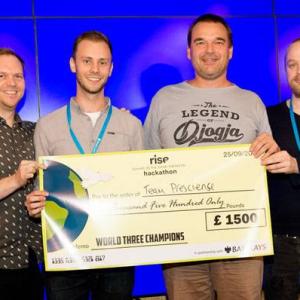 19:00 – The judges have decided and we have our three champions. Congratulations to teams Nevis, Baringa/Priocept, and Presciense! The winners collect their prizes and – more importantly – the glory.