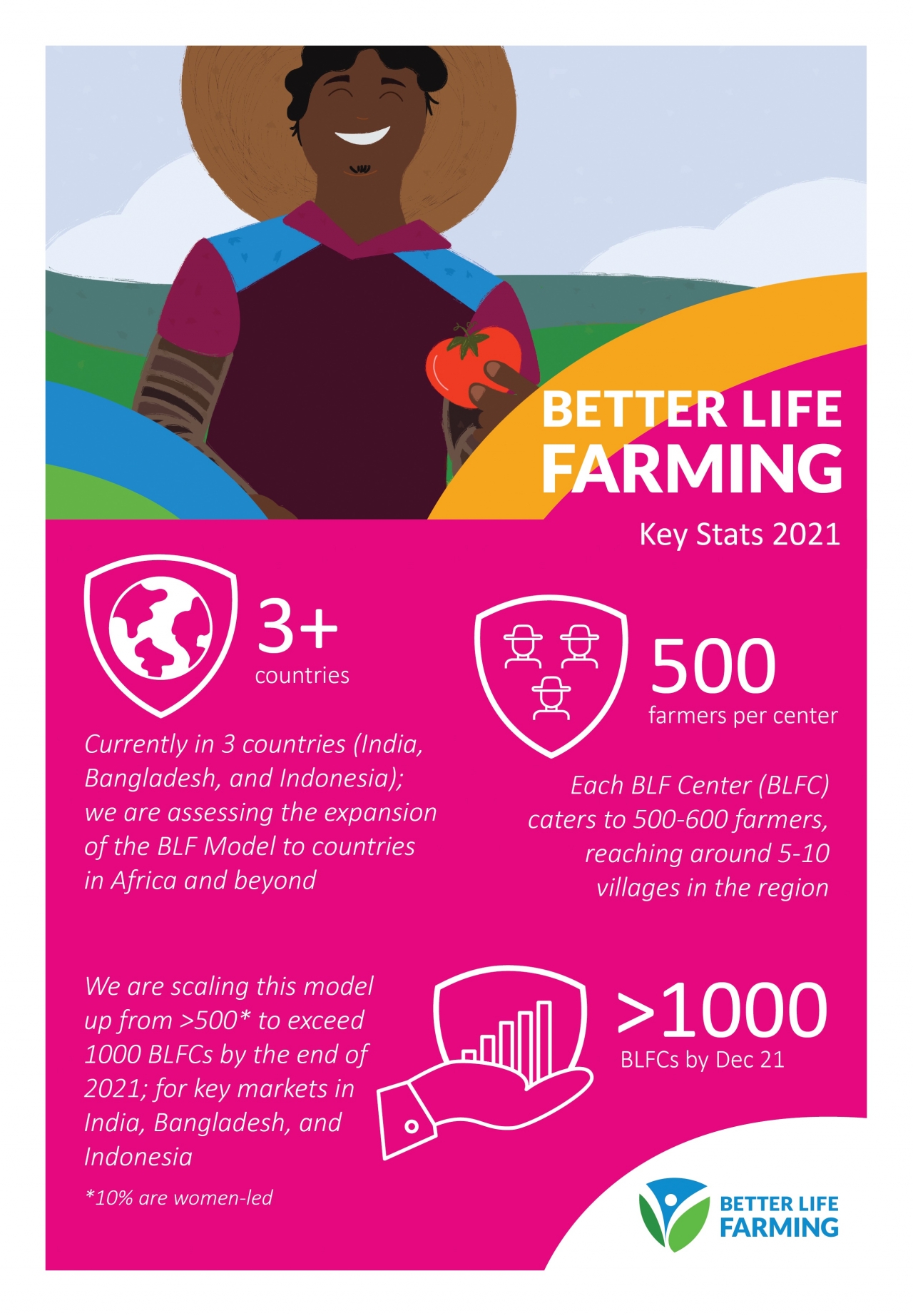 Better Life Farming was one of 6 projects to receive the Build Back Better commendation recognition. BLF aims to grow the number of its Centers to exceed the 1,000 centers currently in place by the end of this year. To view a video outlining the Better Life Farming concept, click here. Bayer is committed to enabling 100 million smallholder farmers in low and middle income countries develop their farming potential as part of the company’s 2030 sustainability commitments.