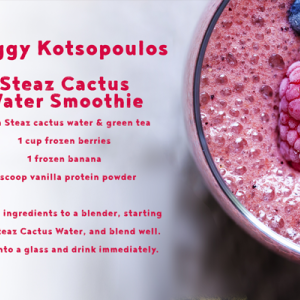 Cacti’s ability to withstand warmer climes makes cactus water a great source of hydration, electrolytes and antioxidants. This smoothie, made with Fair Trade Certified Steaz Cactus Water, augments these natural benefits with vitamin-dense fruit and protein powder. A satisfying beverage to keep you hydrated and energized on even the hottest days.
