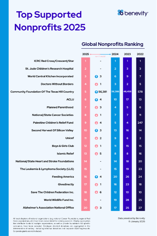 Benevity Releases List of Top Charitable Causes Supported by Companies and Their People in 2025