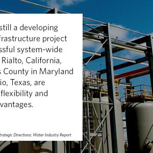 P3s can help solve some of the greatest challenges faced by water and wastewater utilities. Of the most important challenges revealed by respondents to the 2017 Strategic Directions: Water Industry Report survey, P3s can directly help solve the top five: aging water and wastewater infrastructure, managing operational costs, system resilience, managing capital costs, and justifying capital improvement programs (CIPs) and/or rate requirements.