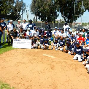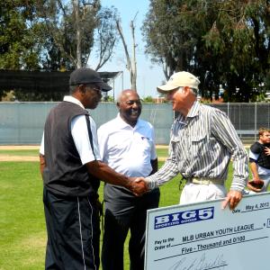 A special check presentation was made on Saturday morning with Rick Gridley, Public Affairs Director for Big 5 Sporting Goods delivering the funding to MLB Urban Youth Academy Manager and former MLB All-Star, Don Buford, along with Hall of Famer and 18-time All Star, Rod Carew. Many young ballplayers were on hand to show their appreciation.