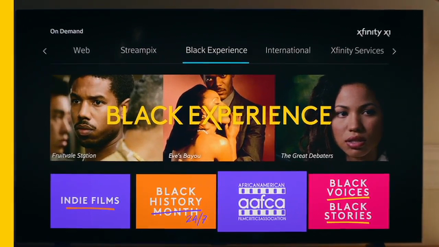 Black Experience uniquely blends programming from across the Xfinity content catalog, spanning networks, free and ad-supported video streaming services, streaming music providers and more.