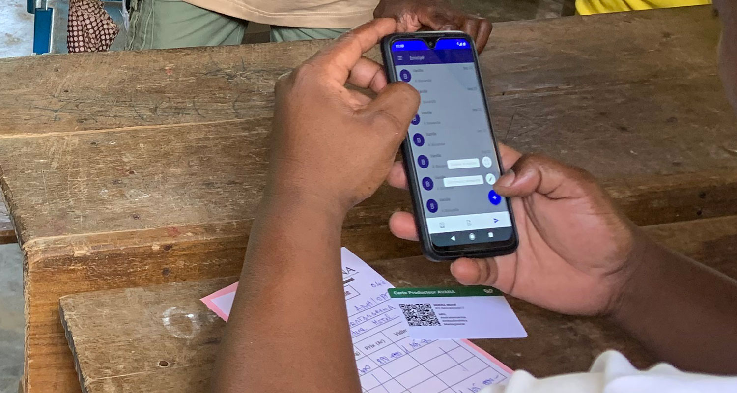 The farmer reached into his bag and pulled out a newly issued membership card that identified him as a card-carrying member of the cooperative. Léon scanned the QR code on the card with his mobile phone, prepopulating a Wholechain digital record with key information about the farmer, coop, and location, and then added the agreed weight of the product sold. Finally, he clicked “send” to electronically send the record to the trader. Léon looked up, pleased.