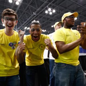 Bloomberg continues our commitment to inspiring the next generation as lead sponsor of the 2015 NYC Regional FIRST® Robotics Competition. The Javits Center roared with 66 international teams and their families including 13 talented Bloomberg-sponsored robotics teams and their mentors. Five Bloomberg teams made it through to the final round with one, the Griffins 1884 from London, coming out on top. The three day competition was made possible by the efforts of over 270 dedicated Best of Bloomberg (BOB) volunteers, mentors and judges who gave over 1,300 service hours throughout the weekend.