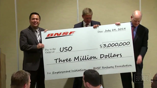 On July 24, the BNSF Railway Foundation announced a $3 million pledge to support USO Warrior and Family Care employment programs for active duty troops transitioning out of the military. The first-of-its-kind, three-year pledge will fund USO programs designed to assist transitioning troops – including those who are wounded, ill or injured – entering the civilian workforce.