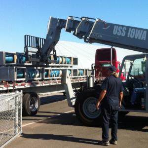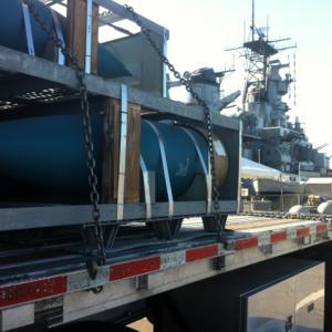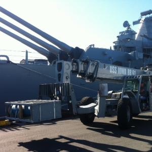 The USS Iowa was an important U.S. Navy battleship during World War II. Now docked at the Port of Los Angeles in San Pedro, Calif., the retired warship is a museum open to the public. Earlier this year, the Navy donated 150 16-by-50-inch caliber projectiles to the museum. Although the projectiles are inert, transporting them was a challenge due to the large size and quantity.