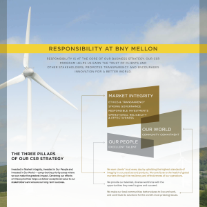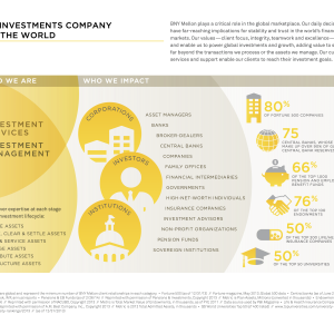 BNY Mellon plays a critical role in the global marketplace. Our daily decisions have far-reaching implications for stability and trust in the world’s financial markets. Our values—client focus, integrity, teamwork and excellence—guide us and enable us to power global investments and growth, adding value to society far beyond the transactions we process or the assets we manage. Our customized services and support enable our clients to reach their investment goals.