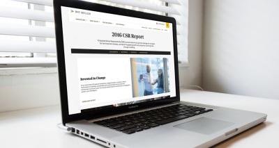 This year, the report was expanded into a set of three pieces with each one designed to meet a particular need. The web pages provide a way to interactively explore the key storylines and highlights from the report, the print overview is a tangible document to share with clients and the comprehensive report is essential for investors, analysts and ratings agencies that score the company’s CSR efforts.